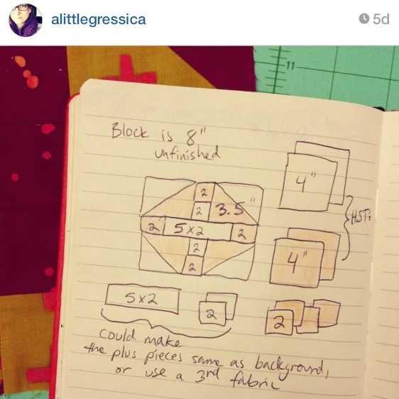 In January, Ara Jane is leading our quilt, and she chose a super fun block called "Inside Addition" which is a block that is being used for an Instagram quiltalong by another member of our circle, Jessica.