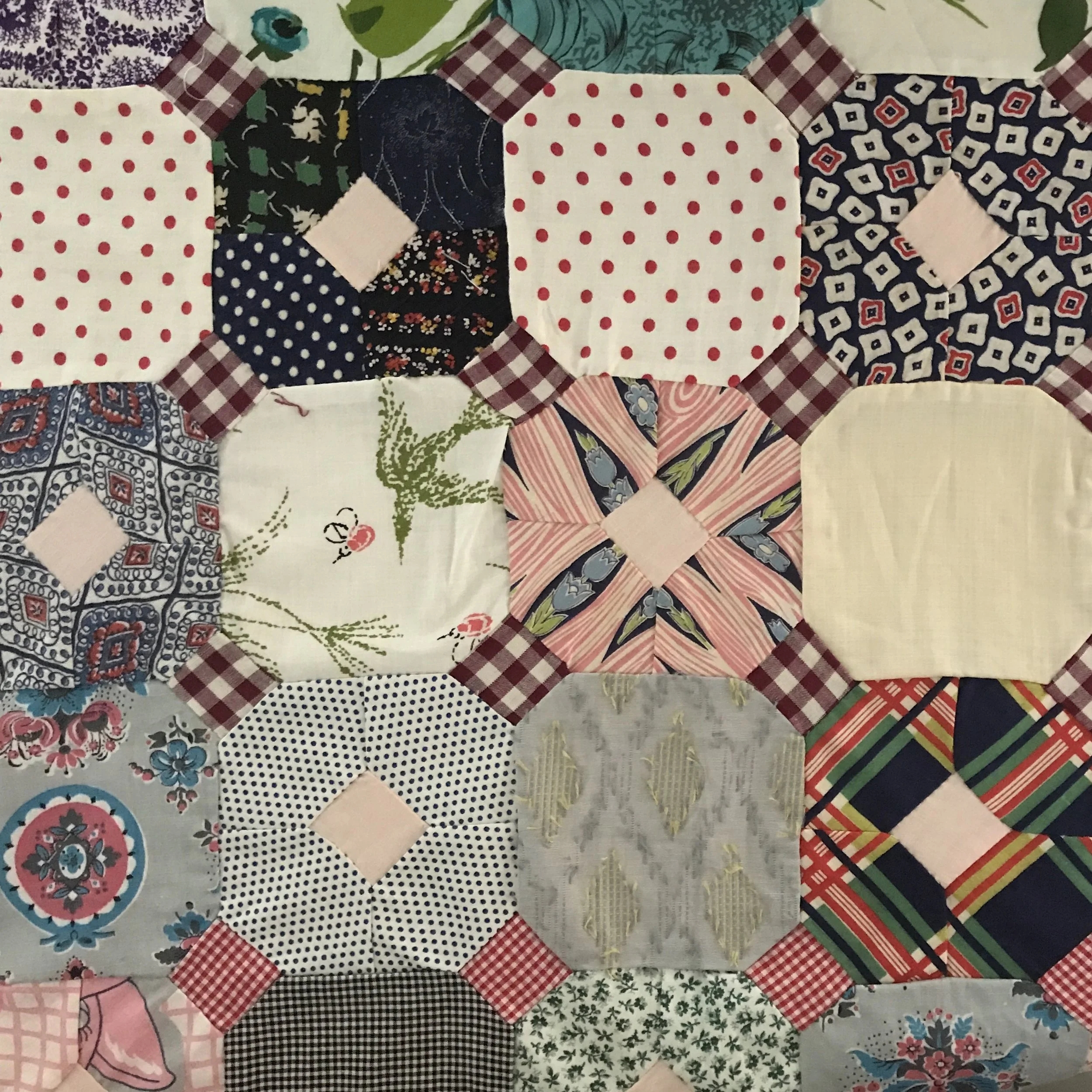 Him Indoors, The Pup and I have just returned from four months roadtripping and spending time with the California family. One of the highlights of the trip was receiving some family quilts. Damon’s grandmother, Thelma Davison, was a quilter. We were gifted three quilts that Thelma had made - one was finished by Damon’s mother, another by his aunt, and one that is incomplete. All of the quilts are beautiful, scrappy utility quilts - they make my heart sing and I feel so honored to receive them, and to be allowed to to complete one myself. The tops are all hand pieced, and the one that I am going to finish has a beautiful little block with a diamond in the center, and that is what I am using as my inspiration for the Love Circle this month.