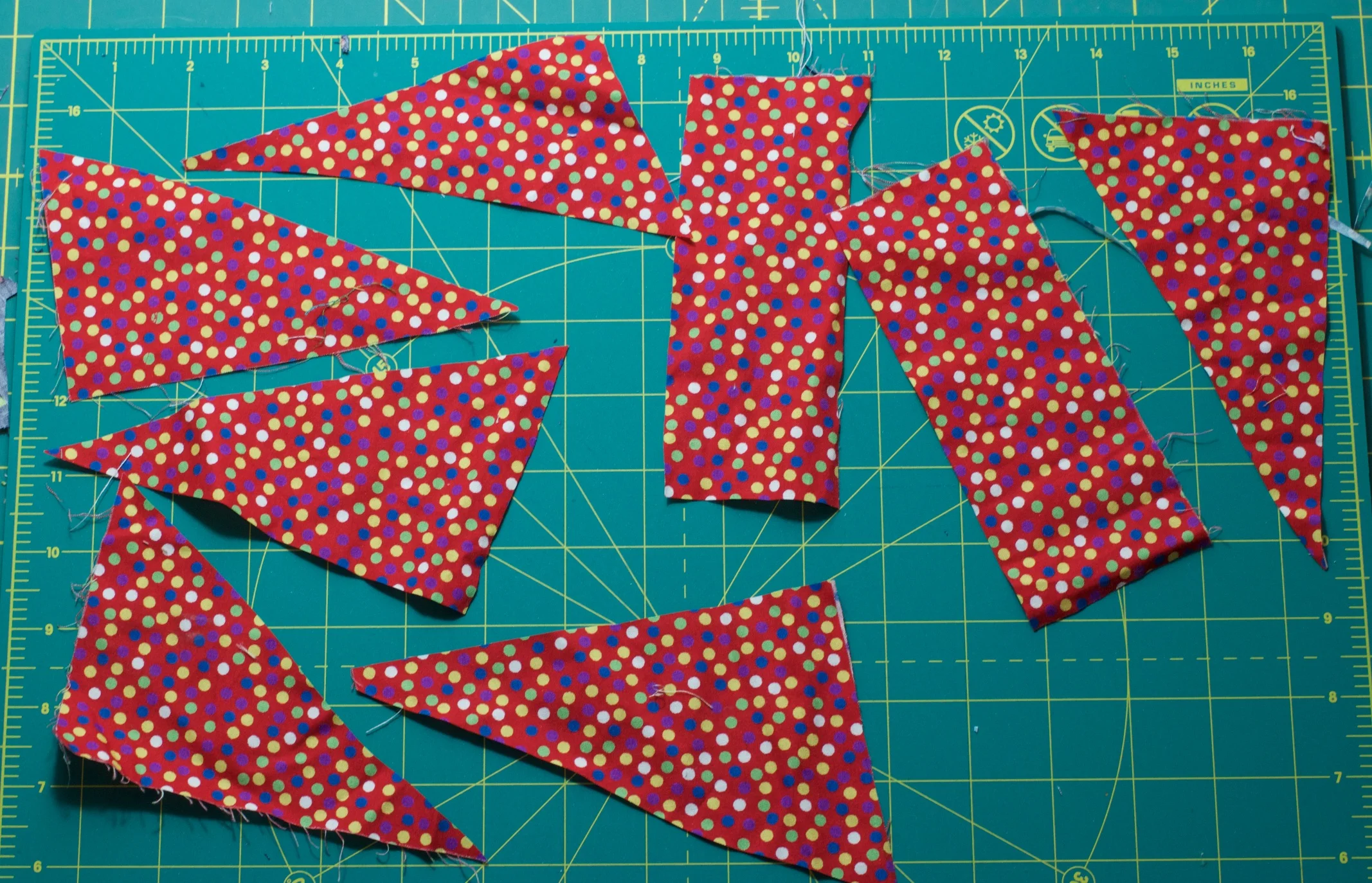 Now cut out eight shapes to use for your star points. They can be triangles or rectangles or anything with at least one long side. I always seem to have lots of triangles and rectangles in my scrap bins so this is great for using those up.